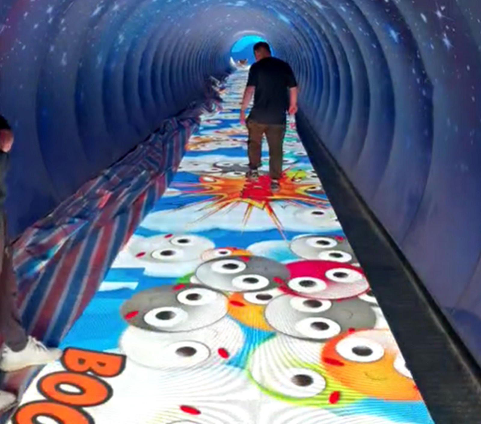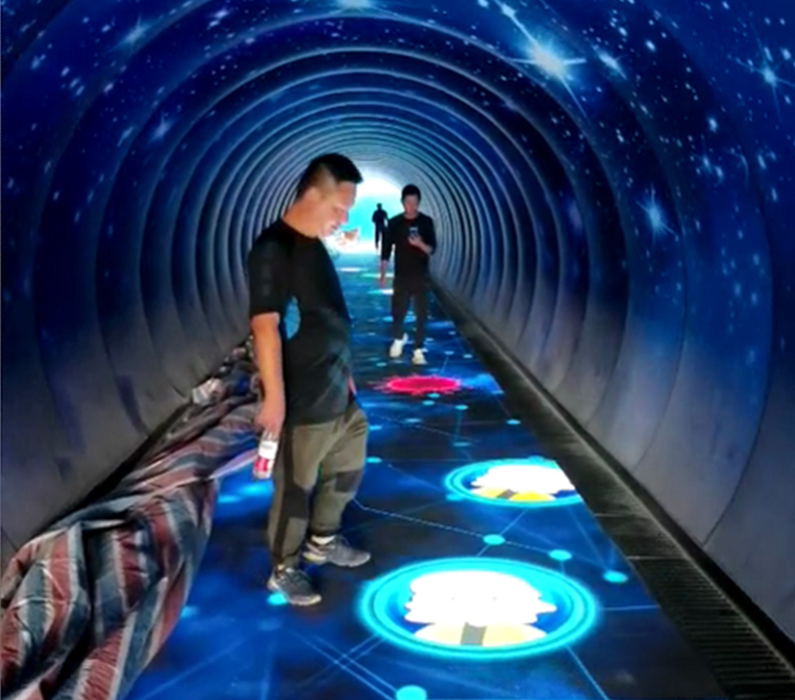 玉溪某高速服務(wù)區(qū),P3.91LED互動地磚屏,105.75m²(鐵箱)
